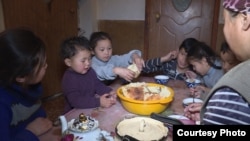 Вокруг обеденного стола сидят дети Перизат Дуйшеевой. Как всегда на обед в этом доме только чай с хлебом. К вечеру она приготовит ужин – отварит полтора килограмма макарон с картошкой. Большего они позволить себе не могут, мясо в рационе появляется редко.