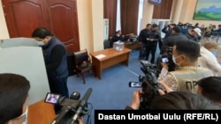 6 октября Ошский городской кенеш проводит внеочередное заседание с участием 30 депутатов. Они обсуждают вопрос освобождения от должности мэра Таалайбека Сарыбашева из-за проведения нечестных выборов.
